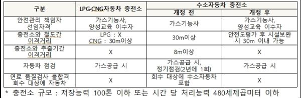 고압가스 안전관리법 시행령 개정을 통해 수소자동차 충전소의 안전관리 책임자 선임자격을 LPG·CNG자동차 충전소와 같이 가스기능사외에 양성교육 이수자도 허용했다.