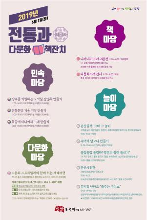 ‘2019년 전통과 다문화 책 잔치’는 우리의 명절 단오를 기념하고 세계 각 국의 문화를 소개해 내·외국인이 서로 화합할 수 있는 프로그램들로 진행할 예정이다.