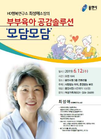 강의는 ‘사랑받는 아이, 존경받는 부모’를 주제로 최성애 HD행복연구소 대표가 진행한다. 최 대표는 자녀양육과 부부관계에 대한 다양한 사연을 공유해 참가자들과 공감하고 행복한 육아의 의미를 되새겨보는 시간을 가질 예정이다.
