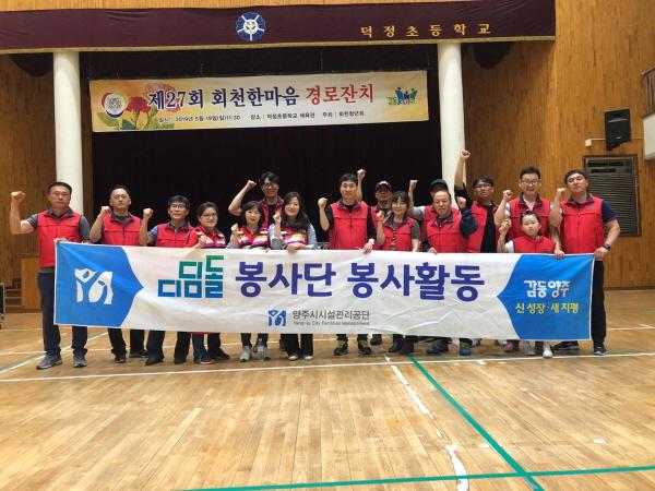 한편 양주시시설관리공단 임직원으로 구성된 디딤돌봉사단은 지역사회 공헌 활동의 일환으로 매달 봉사활동을 실시하고 있으며, 지역의 어르신들을 위해 경로당 방문, 농촌 일손 돕기 등 다양한 활동을 하고 있다.