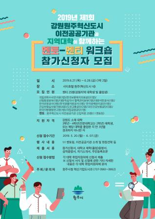 원주시가 오는 6월 27일과 28일 1박 2일 동안 열리는 ‘2019년 제1회 강원원주혁신도시 이전공공기관과 지역대학이 함께하는 멘토-멘티 워크숍’ 참가자를 모집한다.