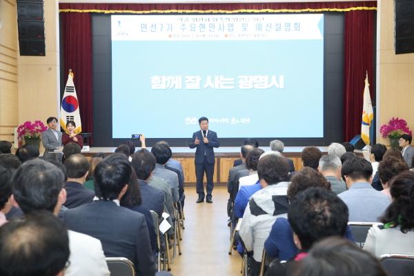 광명시는 지난 20일 저녁 7시 시청 대회의실에서 광명시 각종 위원회에 참여하고 있는 위원들을 대상으로 ‘민선7기 주요현안사업 및 예산설명회’를 개최했다.