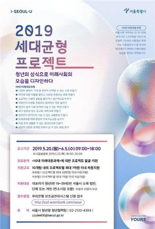 서울시는 청년 스스로 청년세대의 사회적 요구에 대응하는 2019년 세대균형 프로젝트 ‘청년의 상식으로 미래사회를 디자인하다’의 참여자를 모집한다.