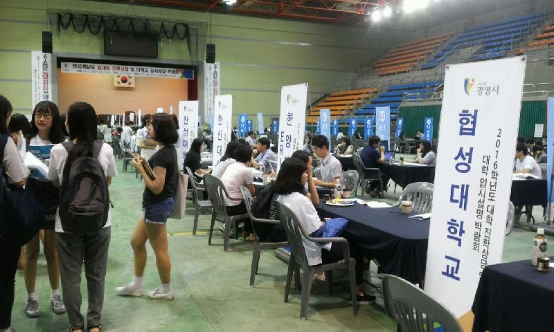 -고3 수험생 500여명이 입시전문상담가와 맞춤형 1:1 진학상담 및 40여개 대학별 부스에서 원하는 대학교의 입시정보에 대한 상담 실시 광명시는 고등학교 3학년 수험생과 학부모를 위한‘2016학년도 일대일(1:1) 진학상담 및 대학교 입시상담 박람회’를 지난 18일(토) 광명시민체육관에서 가졌다.