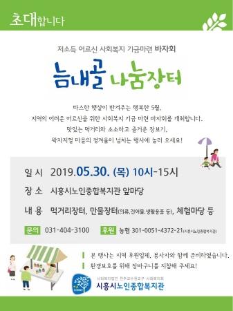 시흥시노인종합복지관은 오는 30일, 저소득 어르신 사회복지 기금마련을 위한 바자회 ‘늠내골 나눔장터’를 개최한다.