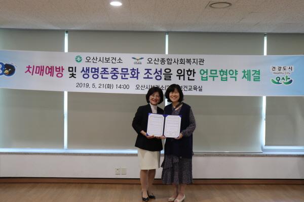 오산시보건소는 지난 21일 노인돌봄서비스 수행기관인 오산종합사회복지관과 독거노인 치매예방 및 생명존중문화 조성을 위한 업무협약을 체결했다.