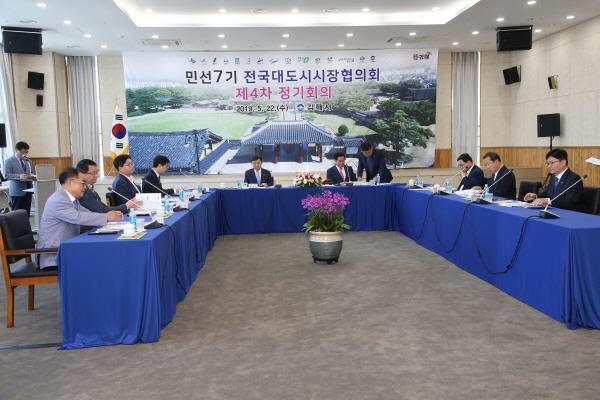 전국대도시시장협의회 제4차 정기회의가 22일 경남 김해 중소기업비즈니스센터에서 열렸다.