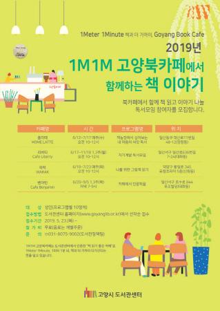 고양시 도서관센터는 오는 23일부터 ‘1M1M 고양북카페’ 독서동아리에 참여할 시민을 모집한다. ‘1M1M 고양북카페’는 도서관센터에서 책 읽기 좋은 카페로 인증하고 상호 협력하는 곳으로, 1Meter 1Minute 1미터 1분 내, 책과 더 가까이 다가간다는 뜻을 담고 있다.