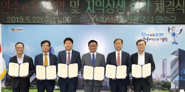 구는 22일 오전 11시 연수구청 대회의실에서 연수구 전자상품권 ‘연수e음’ 발행을 위한 3자 운영협약에 이어 지역경제 활성화를 위한 기업간 지역상생 협약을 잇따라 체결했다.