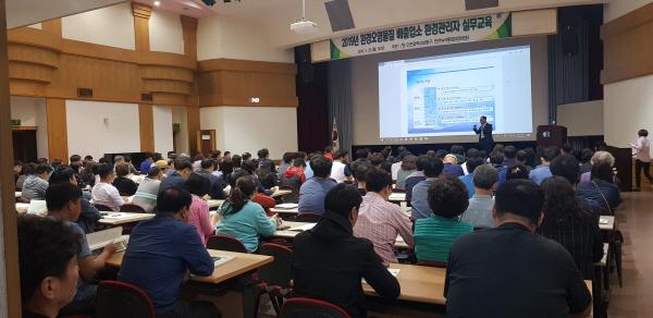 교육에선 HS환경기술사무소 전학송 기술사의 대기·수질·악취분야 환경오염물질 배출시설 및 방지시설 실무관리 요령과 한국환경공단 화학안전팀 배성일 과장의 유해화학물질 관리방안 등을 소개했다.