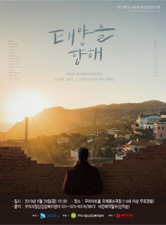 구리시는 오는 24일 오후 3시부터 구리아트홀 유채꽃소극장에서 구리시정신건강복지센터 주관으로 G-mind 정신건강 연극 ‘태양을 향해’를 공연한다.