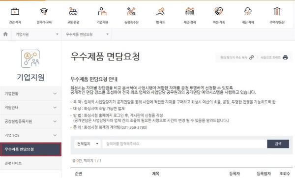 신청은 시 홈페이지에 로그인 후 기업지원 페이지에서 예약 요청을 진행하면 된다.