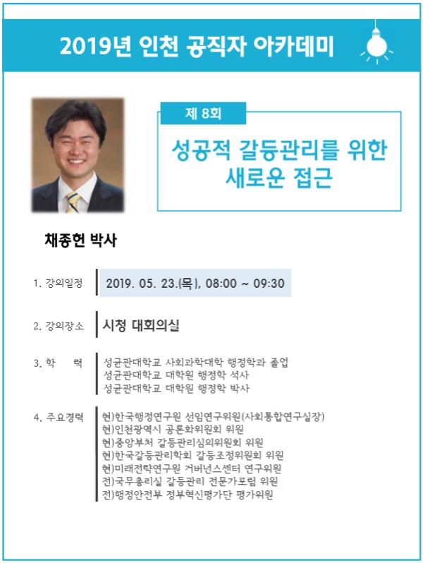 인천시는 5월 23일 ‘성공적 갈등관리를 위한 새로운 접근’을 주제로 채종헌 박사의 특강을 진행했다.