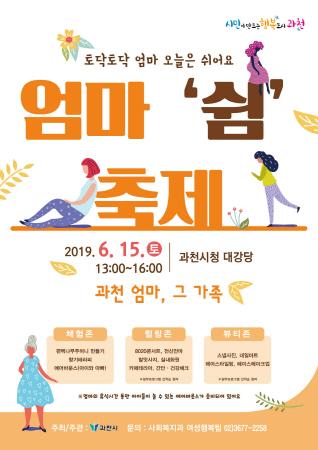 이번 행사는 ‘토닥토닥 엄마, 오늘은 쉬어요’를 주제로 오는 6월 15일 오후 1시부터 과천시청 대강당에서 개최된다.