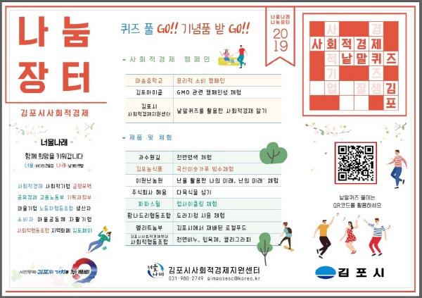 김포시는 오는 25일 오전 11시부터 오후 6시까지 김포아트빌리지에서 ‘2019 상반기 사회적경제 나눔장터’를 개최한다.