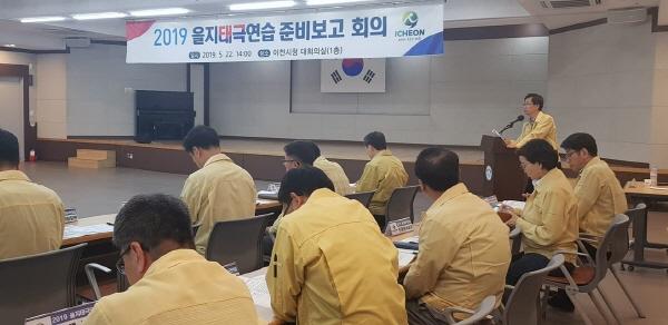 이천시는 지난 22일 시청 2층 회의실에서 을지태극연습 준비 상황을 종합적으로 점검하기 위해 ‘2019년도 을지태극연습 준비보고회’ 및 근무자 사전교육을 실시했다고 밝혔다.