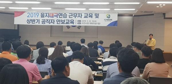 이천시는 지난 22일 시청대회의실에서 을지태극연습 근무자 및 신규공직자 200명을 대상으로 2019년 공직자 안보교육을 실시했다.