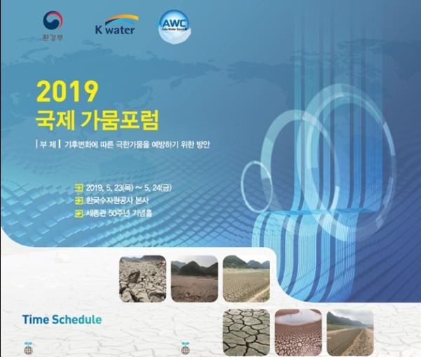 환경부는 한국수자원공사와 ‘2019 국제 가뭄포럼’을 5월 23일에서 24일까지 대전시 대덕구 한국수자원공사 세종관 50주년 기념홀에서 개최한다.