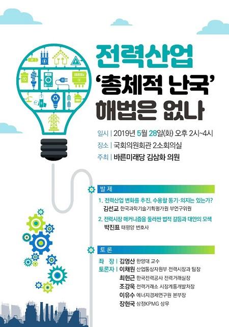 국회 바른미래당 김삼화 의원은 오는 28일 오후 2시부터 국회의원회관 제2소회의실에서 ‘전력산업 총체적 난국 해법은 없나’ 토론회를 연다.
