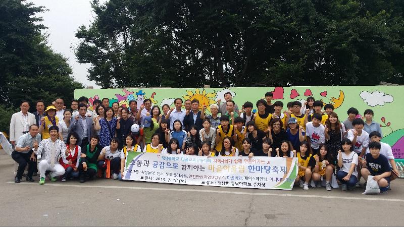 정남면민의 소통과 화합을 위한 동남아파트 주차마당에서 펼쳐진 이번 행사는 정남중학교 학생 및 인근주민 등이 다양한 공연과 볼거리, 먹거리를 비롯해 아나바다 장터, 각종 체험부스, 영화축제로 진행됐다.