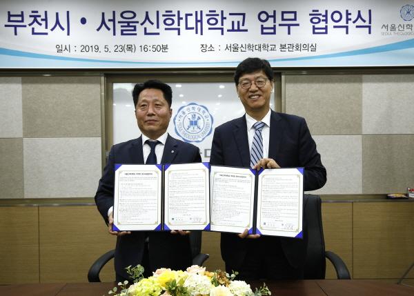 서울신학대학교 본관 회의실에서 열린 이날 협약식에는 장덕천 부천시장, 노세영 서울신학대학교 총장 등 관계자들이 참석했다.