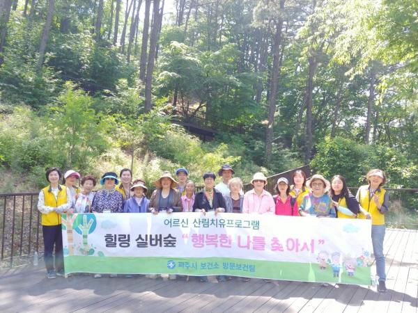 이날 어르신들은 파주시의 건강한 산림을 체험하고 산림치유지도사와 함께 심신이완 실버체조, 산림욕 및 나무교감 등 자연에서 힐링 프로그램을 체험했으며 오랜만에 동료 어르신들과 담소를 나누는 등 즐거운 시간을 보낼 수 있는 기회가 됐다.