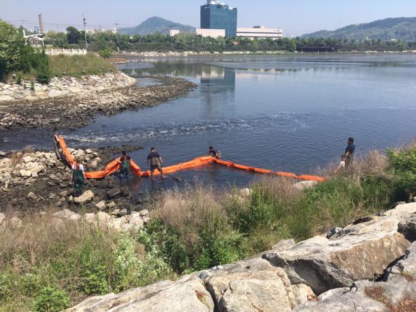 훈련에서는 사고신고 접수 후 유관기관 등 관계기관 상황전파, 오일펜스 설치, 흡착포 및 흡착제를 이용한 오염물질 확산 차단 등 초동 방제조치와 완료 후 사고지역 오염도 조사, 폐기물처리, 유수지 정화활동 에 나섰다.