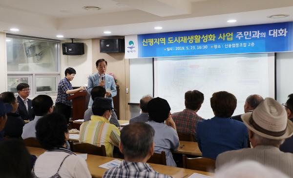 평택시는 지난 23일 ‘신평지역 도시재생활성화사업’ 추진과 관련해 정장선 평택시장을 비롯해 유승영 시의원과 오세권 주민협의체 회장 등 신평동 지역주민 약 60여명이 참석한 가운데 다양한 주민 의견 제시 등 자유로운 토론시간을 가졌다.