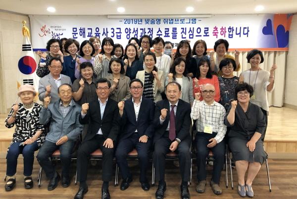 하남시는 평생학습관 2층 파랑새 강의실에서 수료생 24명이 참석한 가운데 2019년 문해교육사 3급 양성과정 수료식을 가졌다고 27일 밝혔다.