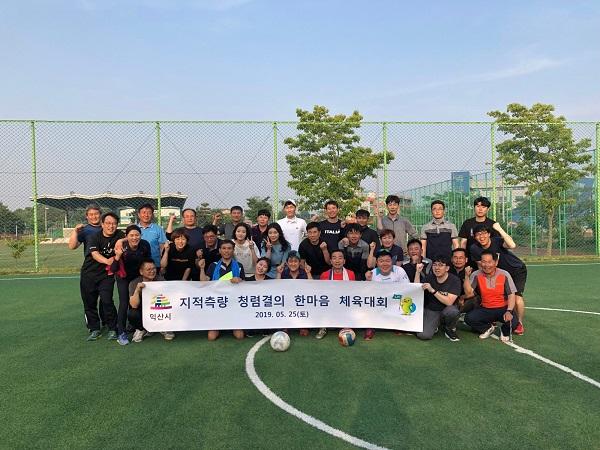 익산시는 지난 25일 수도산체육공원에서 익산시 지적직공무원과 LX공사 익산지사 직원 등 35명이 참석한 가운데 청렴하고 신속·정확한 지적측량서비스를 제공하기 위해‘지적측량 청렴결의 한마음 직장 체육행사’를 열었다.
