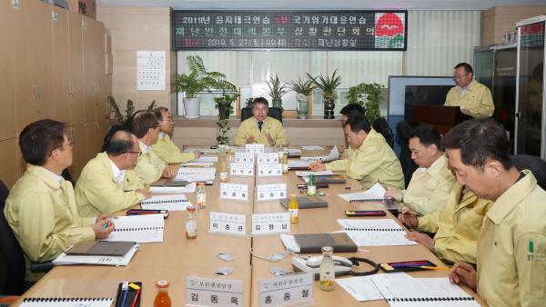 인천 중구는 27일 홍인성 구청장을 주재로 재난상황실에서 재난대응 협업실무반 부서장 등이 참석한 가운데 ‘2019년 을지태극연습 ? 국가위기대응연습’ 상황판단회의를 개최했다.