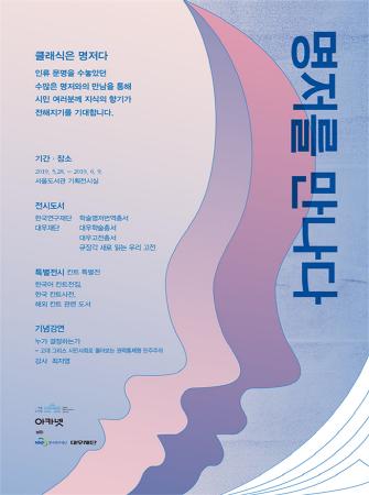 이정수 서울도서관장은 “많은 시민들이 이번 ‘명저를 만나다’ 전시와 강연을 통해 고전 명작들을 만나 인류 역사에서 지식의 흐름 둘러보는 시간을 가져보기를 바란다.”라고 말했다.