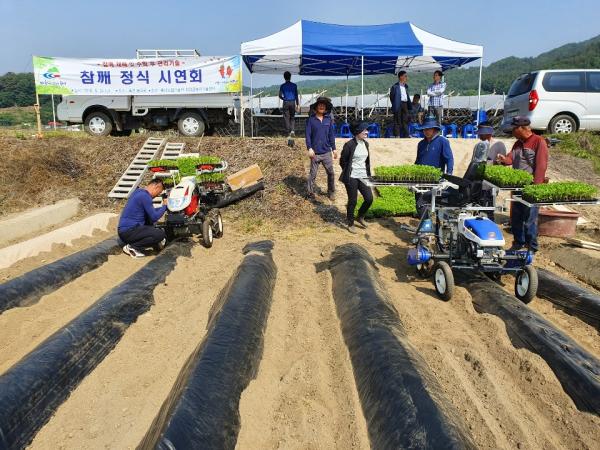 또 실증시험 추진을 위해 지난 4월 기계화작목반을 결성했으며, 기계화 단지의 안정성을 바탕으로 24일에는 기계화 단지·인근 농가가 참여한 가운데 참깨 정식 시연회도 개최한 바 있다