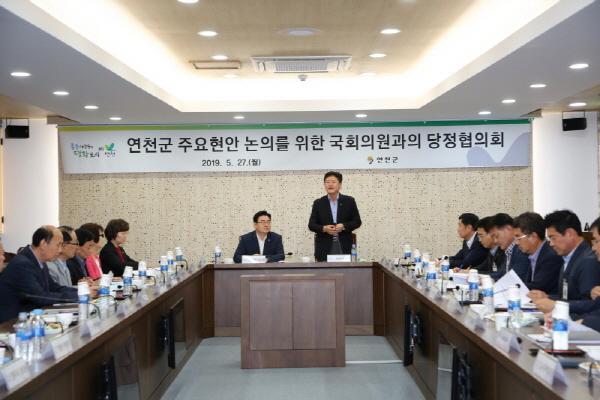 민선 7기 군수 취임 이후 처음 열린 당정협의는 김 의원을 비롯한 자유한국당 핵심당직자들과 김광철 군수 및 각 국장·담당관·과장 등이 참석해 국립연천현충원 건립, 국도3호선 대체우회도로 건설공사, 연천 BIX 조성사업 등 연천군 주요사업에 대한 진행경과 및 향후계획을 검토했다. 또한 신규사업 발굴 및 추가 국비 예산 확보에 대해서도 상호 정보교환을 하며 협력방안을 논의했다.
