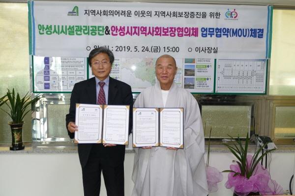안성시시설관리공단은 지난 24일 이사장실에서 안성시지역사회보장협의체와 지역사회의 어려운 이웃의 지역사회보장증진을 위한 업무협약을 체결했다.