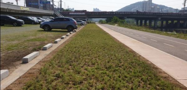 시는 이곳의 잡초를 제거하고 대신 금계국, 톱풀, 코레우리미리 등 3종의 초화류 2만5천주를 조성했다. 또 이 과정에서 기존의 산책로 폭을 1m 확장해 한결 널찍하면서도 안전하게 바꿔놓았다.