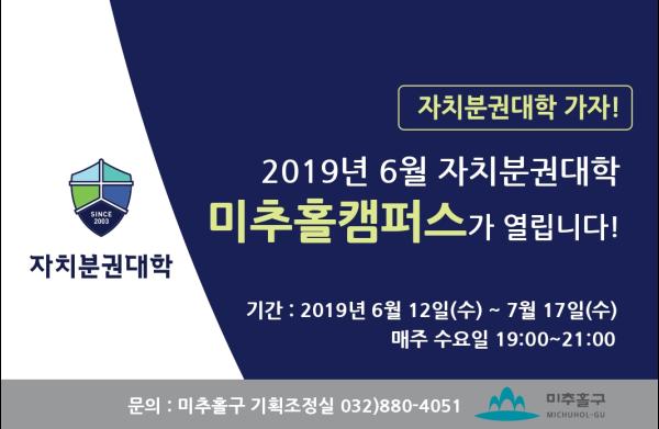자치분권대학 미추홀캠퍼스는 미추홀구청 대회의실에서 운영, 자치분권에 관심 있는 주민, 공무원 누구나 참여가 가능하다. 오는 6월5일까지 미추홀구 기획조정실로 신청하면 된다.