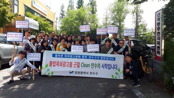 캠페인에는 구 공무원을 비롯한 선학동 통장자율회, 연수구시설안전관리공단, 인천옥외광고협회 연수구지부 회원 등 50여명이 참여했다.
