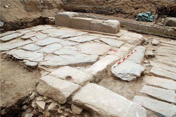 발굴과정에서는 성문에 사용됐던 다양한 종류의 석재가 출토됐다. 아치형의 홍예문을 받치던 기초석, 진서문 통로에 깔았던 대형 보도석, 잘 다듬은 대형 측벽석 등 대부분 진서문 하단부를 구성했던 석재들이 원위치에서 출토됐다. 이 밖에 성문을 달기 위해 돌에 기둥구멍을 낸 문확석 2기, 문지방석 등도 출토됐다. 이 돌들이 놓여진 형태로 보아 진서문의 성문은 두 문짝을 안쪽으로 여닫는 형태로 확인됐다. 문지 서쪽 측벽은 약 1단 정도 남아 있었지만 동쪽 측벽은 배수로 공사 과정에서 사라졌다. 서쪽 측벽과 연결되는 성벽도 배수로 공사로 사라졌지만 일부 성벽 기초가 남아 있어 문지와 성벽이 연결되는 구조를 일부 파악할 수 있었다.