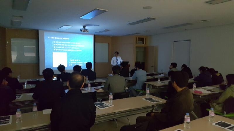 | 지난 29일 건축구조기술사사무소 우성 E&C 전찬목 대표가 ‘철근의 배근 및 이음과 정착’이라는 주제로 강의를 진행하고 있다. |