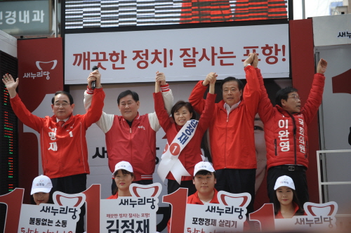 김정재 후보(새누리당, 포항북)는 공식 선거 운동 첫날인 31일 오후 1시 죽도시장 개풍약국 앞에서 출정식을 갖고 본격적인 선거운동에 돌입했다. 이날 출정식에는 최경환 전 부총리(대구경북총괄선대위원장), 박명재 경북총괄선대본부장, 이한성 경북도당위원장. 이완영 국회의원이 참석한 가운데 지지자들과 시민 5천여명이 참석했다. 출정식에서 첫 무대에 오른 최경환 선대위원장은 “대한민국의 산업화를 선도한 도시, 경북 제1의 도시 포항에서 대한민국의 명운을 가를 제20대 총선 선거의 첫 날, 첫 유세를 시작하게 되었다”고 소감을 밝혔다. 이어 “우리 김정재 후보와의 인연은 지난 대선 시절 박근혜 대통령의 당선을 위해 대통령 곁에서 열심히 뛰는 모습을 통해 당차고 똑똑한 여성 정치인의 모습으로 남아 있다”며 김정재 후보와의 인연을 언급하며, “서울에서 정치를 할 줄 알았는데 어느 날 고향 포항을 위해 봉사하겠다는 마음으로 정치를 하겠다는 얘기를 듣고 포항의 큰 일꾼이 되겠다는 생각을 했다”고 말했다. 또한 “포항의 경제를 살려내기 위해서는 깨끗하고, 똑똑하고, 어머니 같은 리더쉽을 가진 우리 새누리당의 김정재 후보가 당선되어야 한다. 포항의 박근혜 정부, 새누리당 도지사, 새누리당 출신 남·북구 국회의원, 새누리당 포항시장이 함께 소통하고 손을 맞잡고 포항의 경제 발전을 위한 노력들을 할 때 영일만항, 영일만대교, 사통팔달의 교통 등 포항이 세계적인 도시로 변모할 수 있는 완벽한 팀이 될 것”이라고 말하며, “조단위의 예산이 들어가는 사업들을 무소속 국회의원이 어떻게 예산을 따올 수 있겠냐”고 포항발전을 위한 새누리당 후보 당선의 필요성을 주장했다. 출정식 마지막 순서로 연단에 오른 김정재 후보는 “포항시장 경선 후 깨끗이 승복하고 현 포항시장의 승리를 위해 뛰었다. 그리고 선거가 끝난 후 떠나지 않고, 포항에 남아 단 하루도 쉬지 않고 시민들을 만나왔으며 시민 여러분들의 지지로 지금 이 자리에 서게 되었다”고 소감을 말했다. 이어 “대통령을 배출한 도시, 남·북구의 새누리당 출신 중진 국회의원과 함께 1천년에 한번 올까말까한 좋은 기회에 번듯한 대기업 하나 유치하지 못했던, 포항을 발전 시킬 수 있는 절호의 기회를 놓쳐버린 버리고 반성해야할 사람이 포항의 자존심을 말하며 새누리당을 탈당하고 무소속으로 출마했다”며 “포항의 재도약, 박근혜 정부의 성공, 미래로 가는 대한민국을 만들기 위해 포항의 새로운 정치인 한 명 키워 달라”며 지지를 호소했다. 한편, 최근 새누리당 공천에 불복해 탈당하고 무소속으로 출마한 후보들에 대해서 복당과 관련한 입장을 말했던 최경환 전 부총리는 당일 “새누리당이 자기 집 안방도 아니고 나가고 싶을 때 나가고 들어오고 싶을 때 들어오는 곳이 아니다”며 “무소속 후보가 당선 후 새누리당으로 다시 들어오겠다고 말하는데 있을 수도 없고, 절대 용납하지 않을 것”이라고 밝혔다. // 심후보 기자 sky626201@naver.com