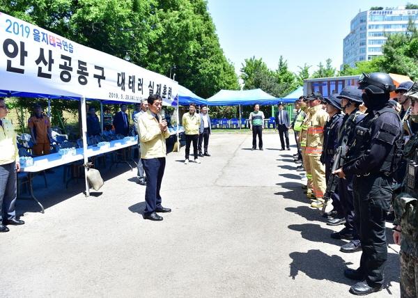 안산시는 2019 을지태극연습의 일환으로 안산공동구에서 ‘대테러 및 화재 대응 실제훈련’을 실시했다고 30일 밝혔다.