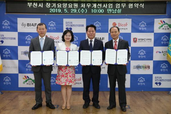 부천시는 지난 29일 시청 만남실에서 장기요양요원 처우개선 사업을 지원할 부천근로자건강센터, 부천시장기요양시설협회, 부천재가장기요양기관협회와 업무협약을 체결했다.