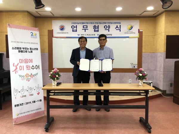 안양시청소년재단 산하 만안청소년문화의집은 지난 29일 한국농아인협회 안양시지회와 업무협약을 체결하고 양 기관의 상호 긴밀하고 우호적인 관계를 바탕으로 청소년 활동프로그램의 활성화와 수어의 보급·전파를 위해 협력하기로 했다.
