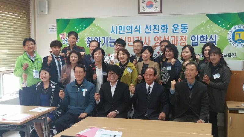이날 입학식에는 지난 2월 22일부터 진행된 시민강사 모집공고에 지원한 15명의 예비시민강사들과 양성과정을 개설한 거제시청 시민고충처리담당관 옥성호 담당관, 거제대학교 이화수 평생교육원장을 비롯하여 거제시 나부터 다함께 시민운동본부 박행용 본부장과 양성과정을 진행할 이헌 교수와 정경옥 강사 등이 참석했다.