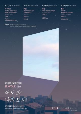 오는 6월 11일부터 20일까지 2주간 화요일과 목요일 저녁 7시 총 4회에 걸쳐 도시재생, 예술, 청년, 환경 등 4가지 주제로 지역의 트렌디한 콘텐츠를 시민들과 공유하고 해당 분야의 전문가와 함께 소통하는 강연·대담회 형식으로 진행된다.