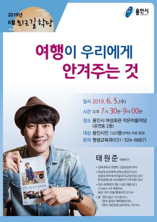 용인시는 직장인을 위한 저녁 인문강좌로 오는 6월 5일 여성회관 작은어울마당에서 태원준 여행작가가 세계여행 경험담을 나누는 무료 특강을 연다.