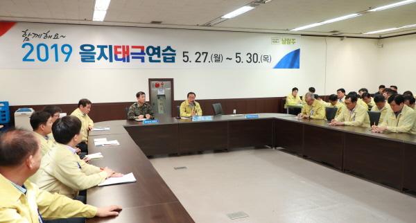 남양주시는 30일 을지태극연습장에서 조광한 시장 주재로 간부공무원 30여명을 비롯해, 군·경찰·소방서 등 유관기관이 참석한 가운데 ‘2019년 을지태극연습 상황보고회’를 개최했다.