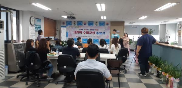 수어교실은 지난 3월부터 초급과 고급과정으로 주 1~2회 주간 및 야간으로 12주간 수업을 진행했고, 교육생들은 수료식에서 수어로 자기소개와 대중가요 노사연의 ‘만남’을 노래했다.