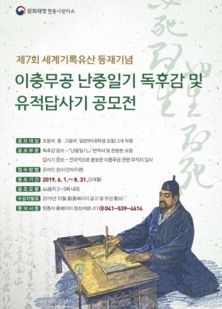 올해로 제7회를 맞이하는 공모전은 난중일기가 유네스코 세계기록유산으로 등재된 2013년부터 시작된 행사로 이순신 장군의 나라사랑 정신과 유적 보존에 대한 국민 인식을 넓혀나가는 데 이바지하고 있다.